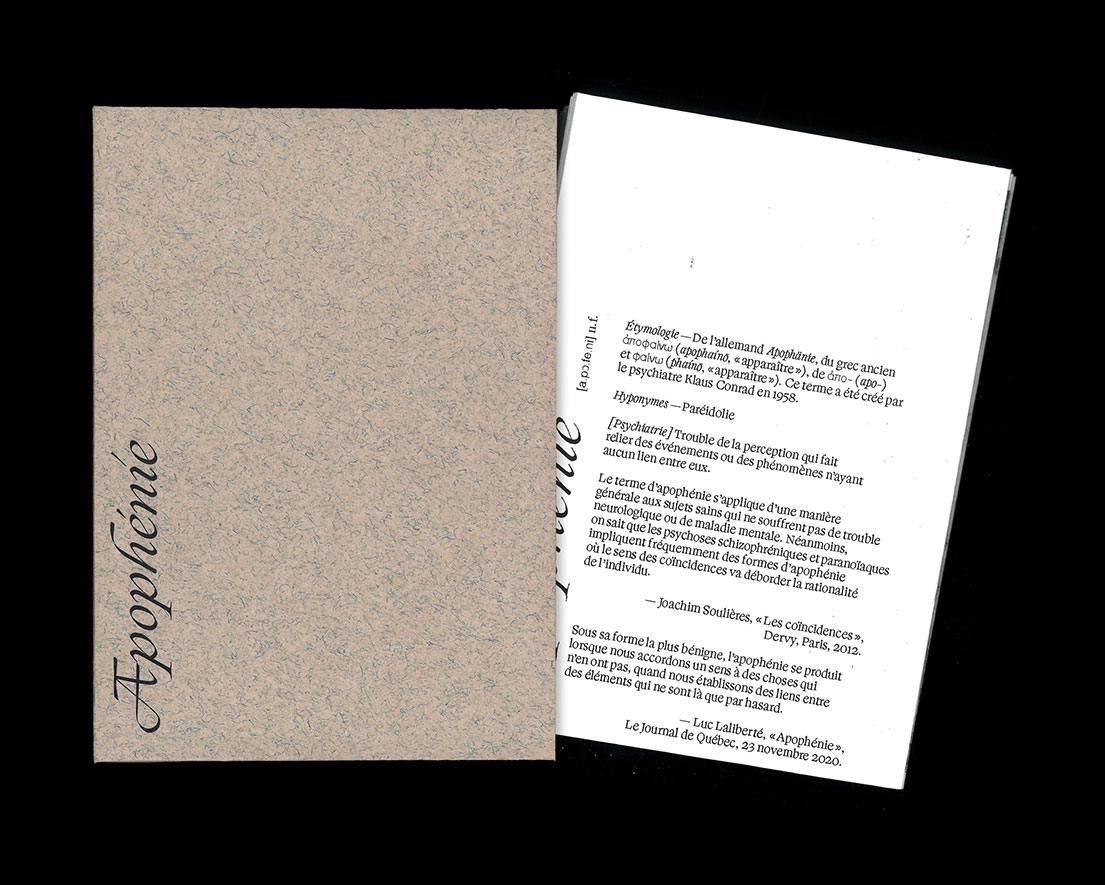 Editorial design on the theme of apophenia, based on the concept of Shiritori, a Japanese game similar to "Trois petits chats".