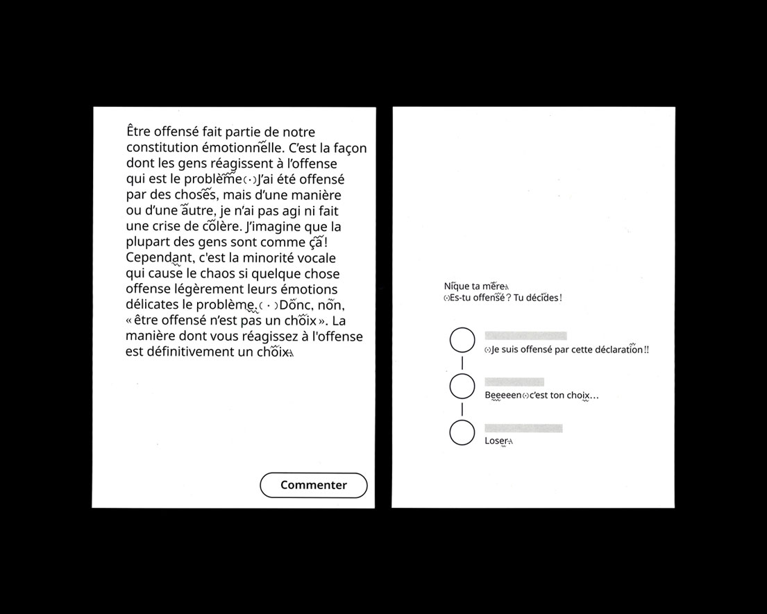 Research and design of a typographic system with the aim of “de-contracting” digital language as part of my end-of-study project. As well as the production of several printed objects.