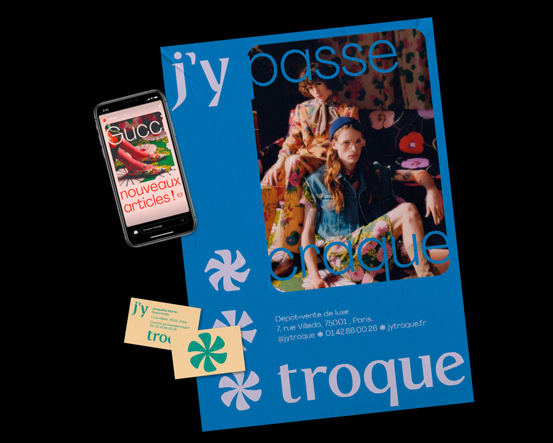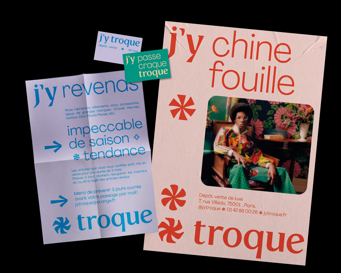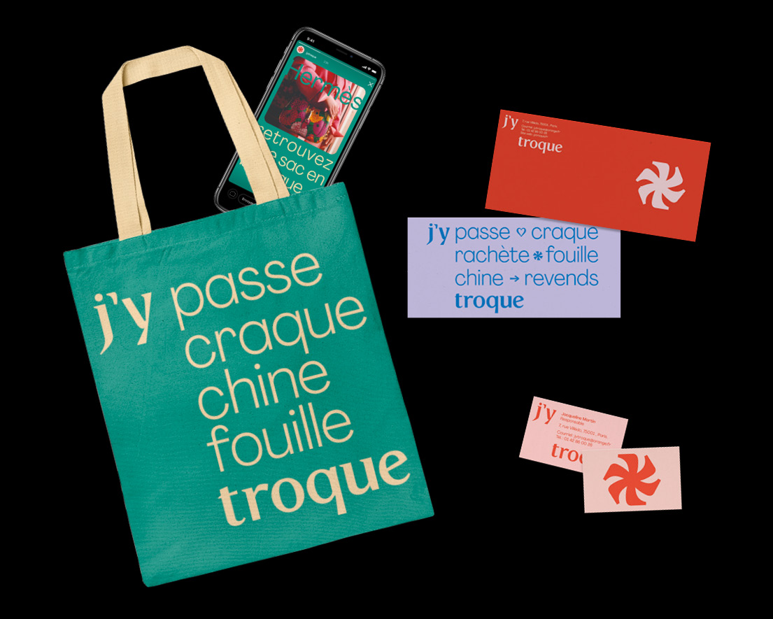Thrift shop branding, focusing on the act of thrifting, reselling and exchanging clothes. Using type heavy graphic design, logo lettering and symbols design.