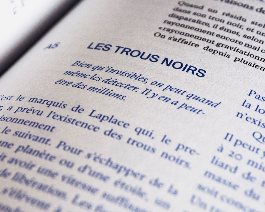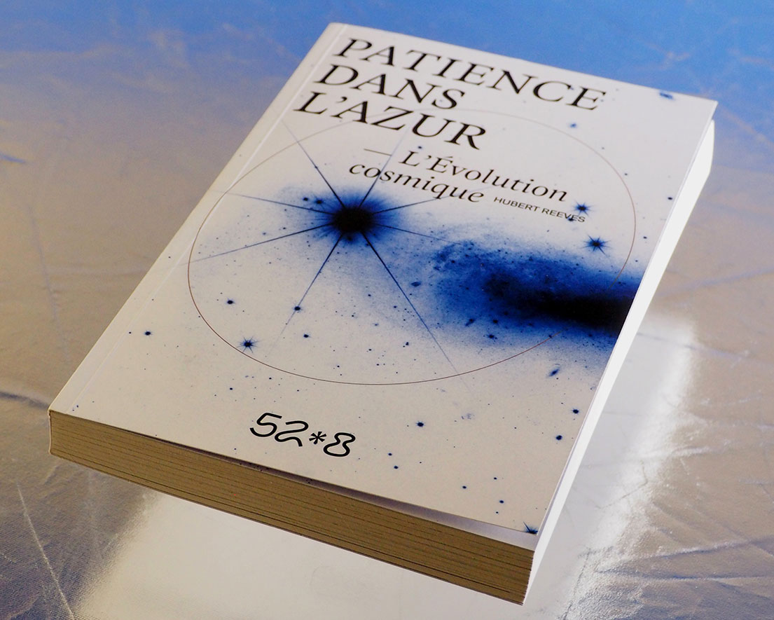 Creation of the 52*8 publishing house which publishes works focusing on science. Editorial design of their first book, a reissue of Patience dans l'Azur by Hubert Reeves.